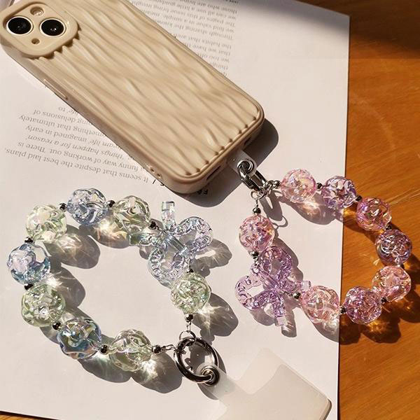 スマホアクセサリー ハンド ストラップ 手首 リストストラップ クリア ビーズ かわいい 落下防止 iPhone Android...
