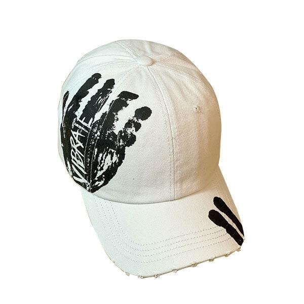 メンズ ベースボール キャップ 帽子 手形プリント つば ダメージ加工 日焼け止め カジュアル ストリート アジャスター付き 調整...
