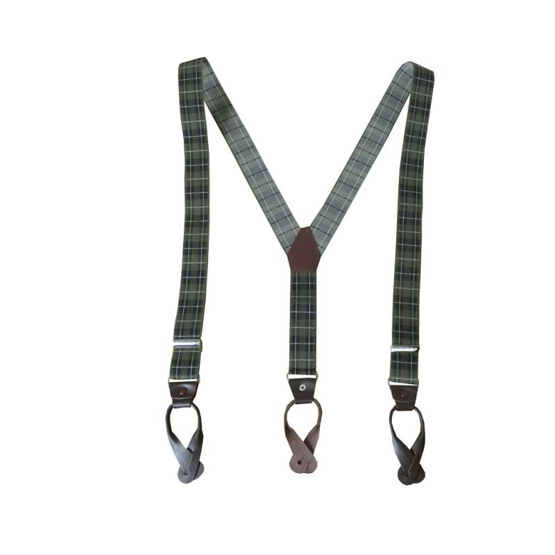 サスペンダー メンズ Y型サスペンダー 35mm 本革 七々子 カシメボタン式 ゲバルト タータンチェック グリーン S10 ...