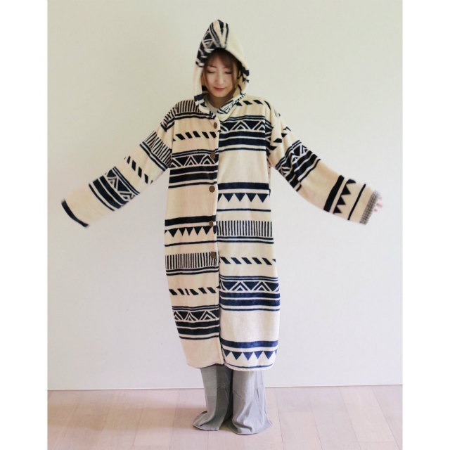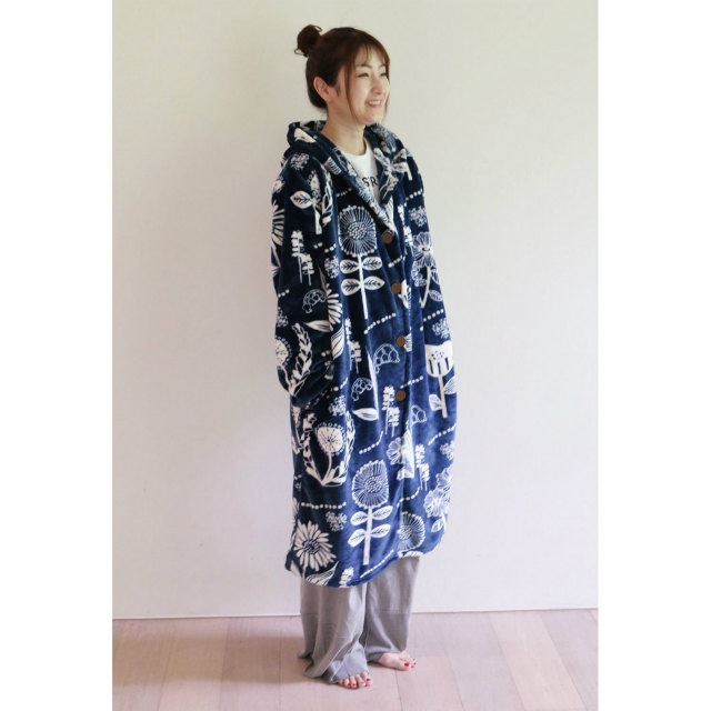 肩首まであったか あたままですっぽり~ふわふわ着るブランケット~<ナチュラルフラワー ネイビー>フリーサイズ