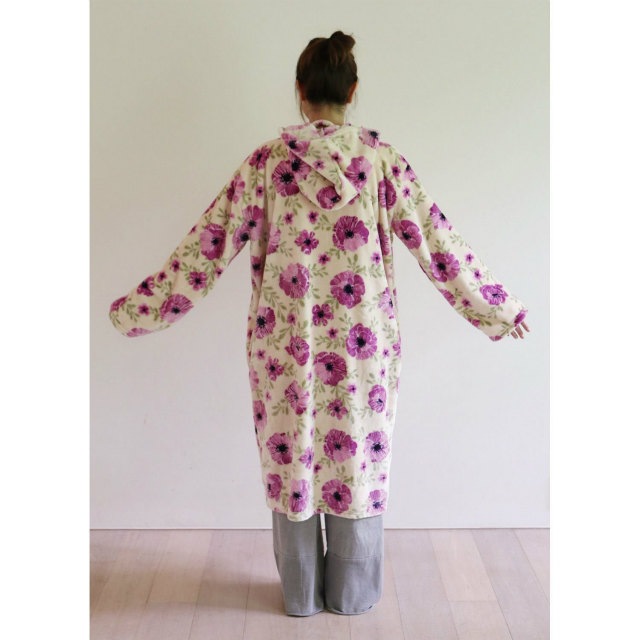 肩首まであったか あたままですっぽり~ふわふわ着るブランケット~<フラワー ピンク >フリーサイズ