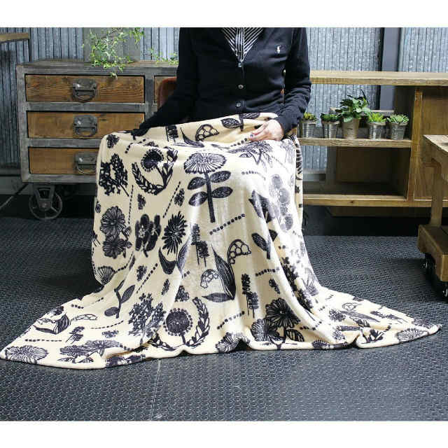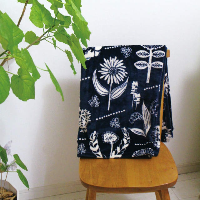 すっぽりあったか ~ふわふわブランケット~<ナチュラルフラワー /ネイビー>