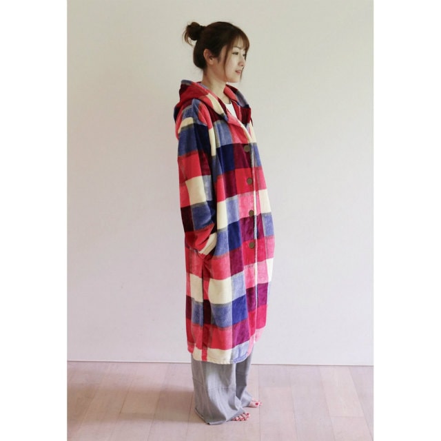 肩首まであったか あたままですっぽり~ふわふわ着るブランケット~<ブロックチェック レッドネイビー >フリーサイズ