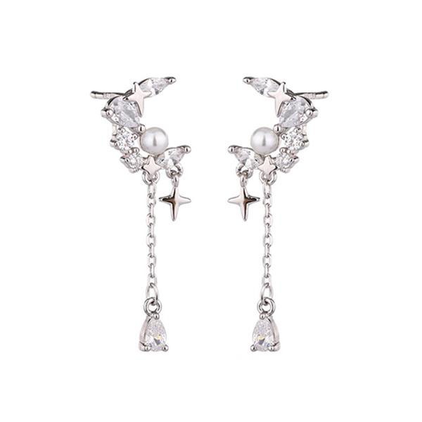 レディース 夜空 ビーズ チェーンピアス スタッド アクサセリー シルバー999 ジルコニア ギフト プレゼント 金属アレルギー対...