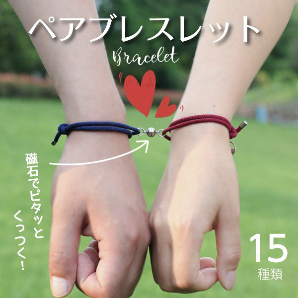 【即納】ユニセックス 男女兼用 アクセサリー ペアブレスレット チャーム付き ブレスレット LOVE マグネット レザーベルト 長...