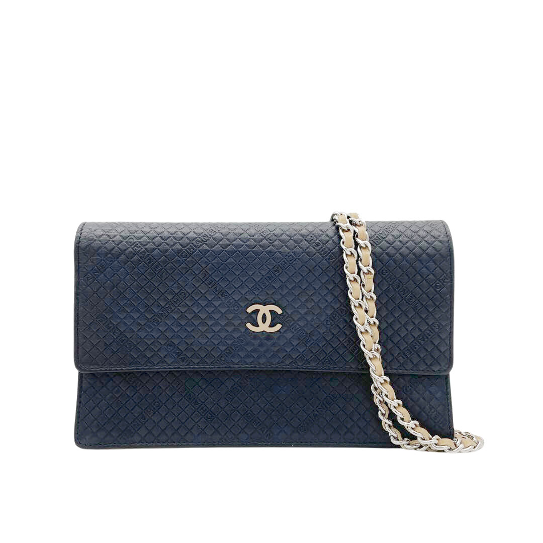 CHANEL シャネル チェーンウォレット ロゴキルティング ココマーク 型押し レザー ブラック ベージュ シルバー金具 9番台