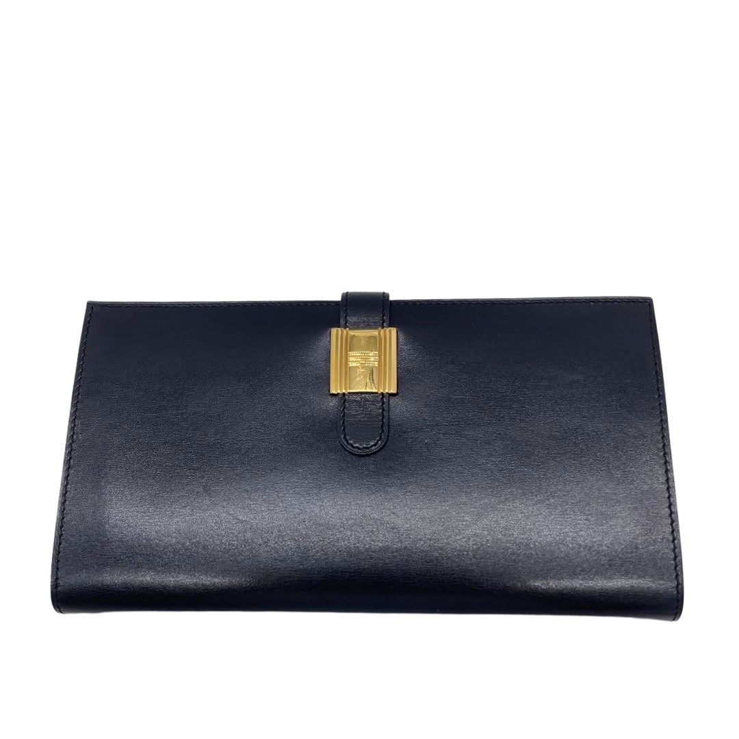 HERMES エルメス 二つ折り長財布 ソミュールディアンヌ ボックスカーフ ブラック ゴールド金具 ○W刻印 ヴィンテージ