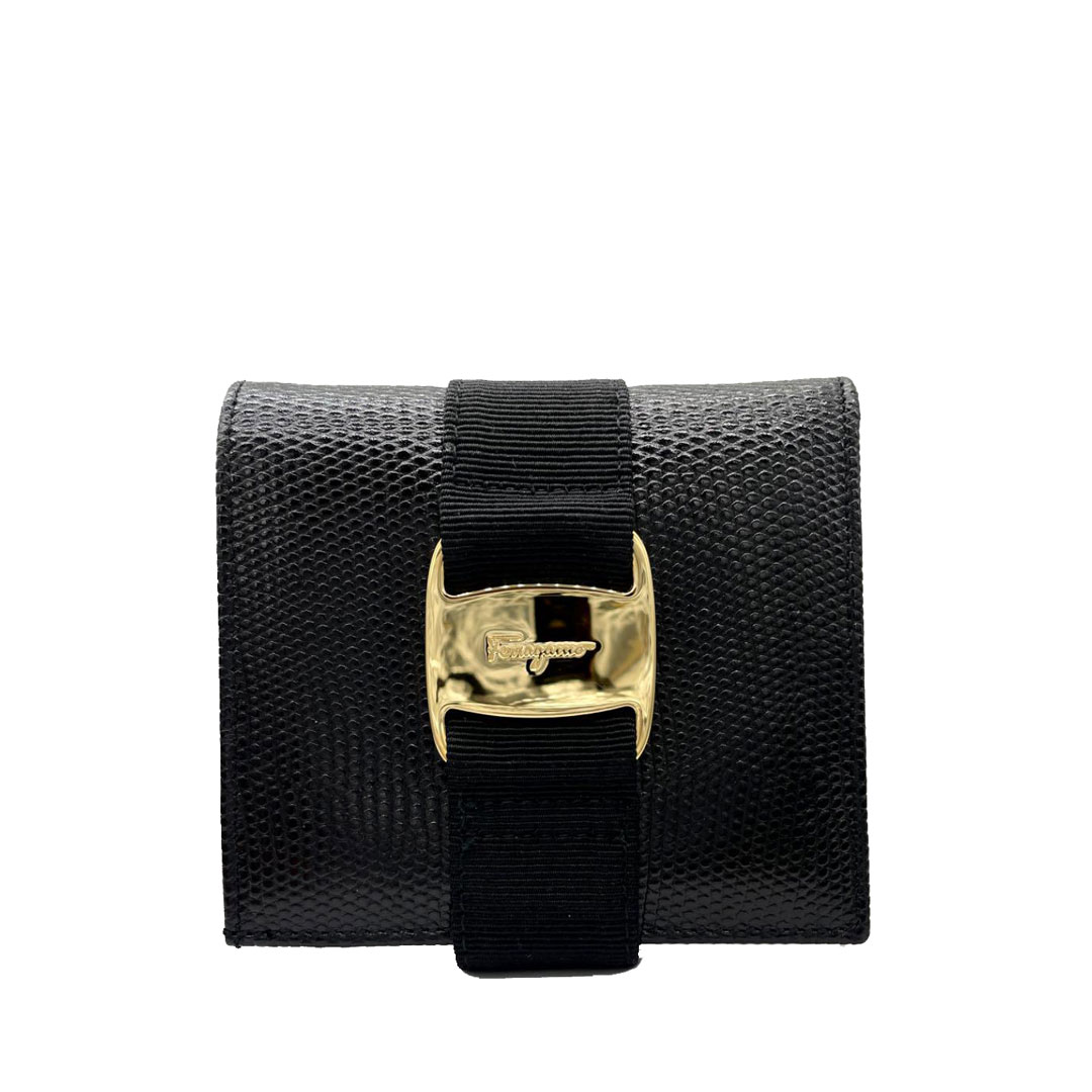 Salvatore Ferragamo サルヴァトーレフェラガモ ヴァラ 三つ折り財布 コンパクトウォレット リザード型押しレザー...
