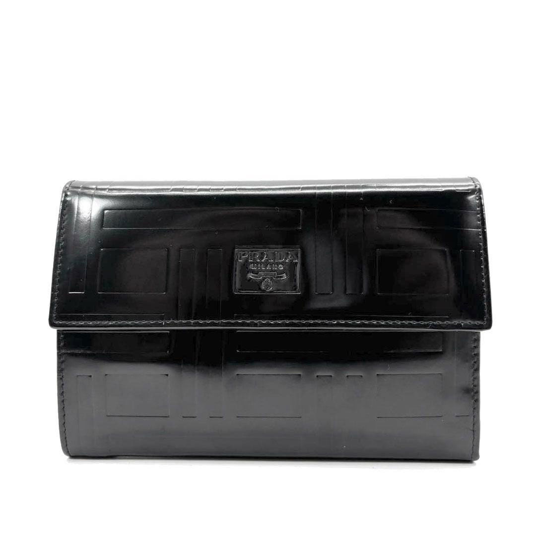 PRADA プラダ 三つ折り財布 パテントレザー ブラック