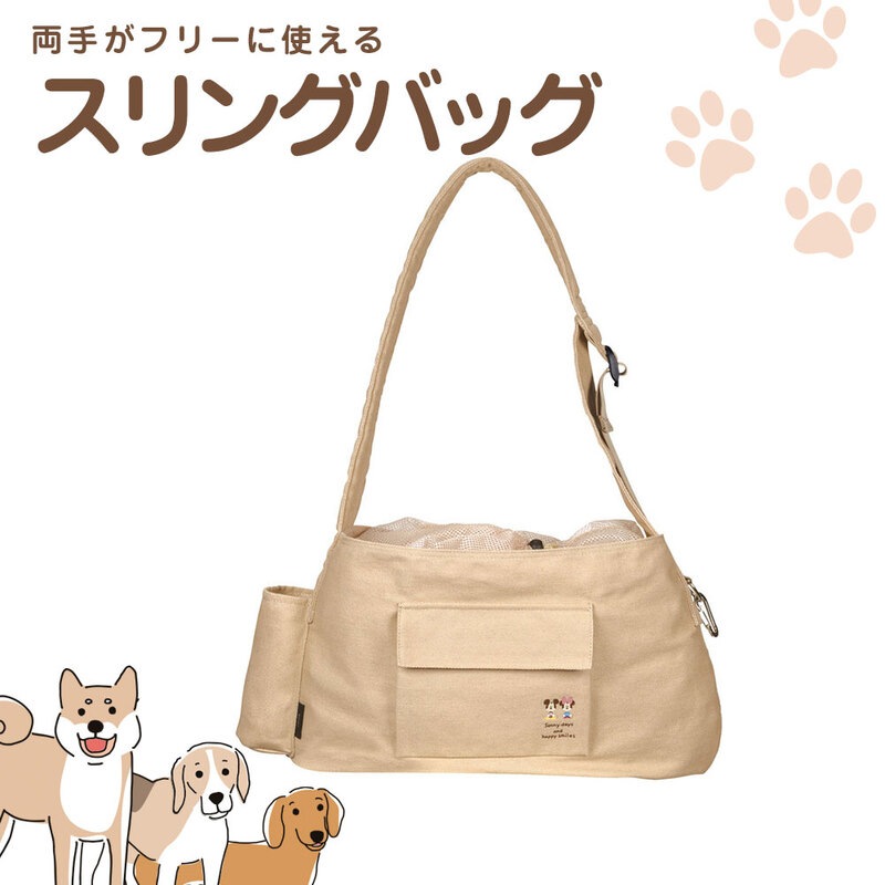 お散歩バッグ 犬 ショルダー 斜め掛け スリング 軽量 Dカン カラビナ フック ボトルポケット ペット用品 おでかけ ミッキー ...