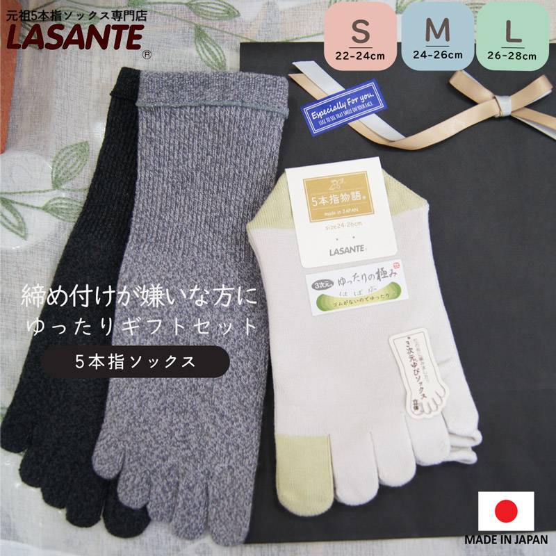 5本指靴下 3足組 ゆったり ゴムなし ギフトセット 日本製 プレゼント S(22-24cm)M(24-26cm) L(26-2...