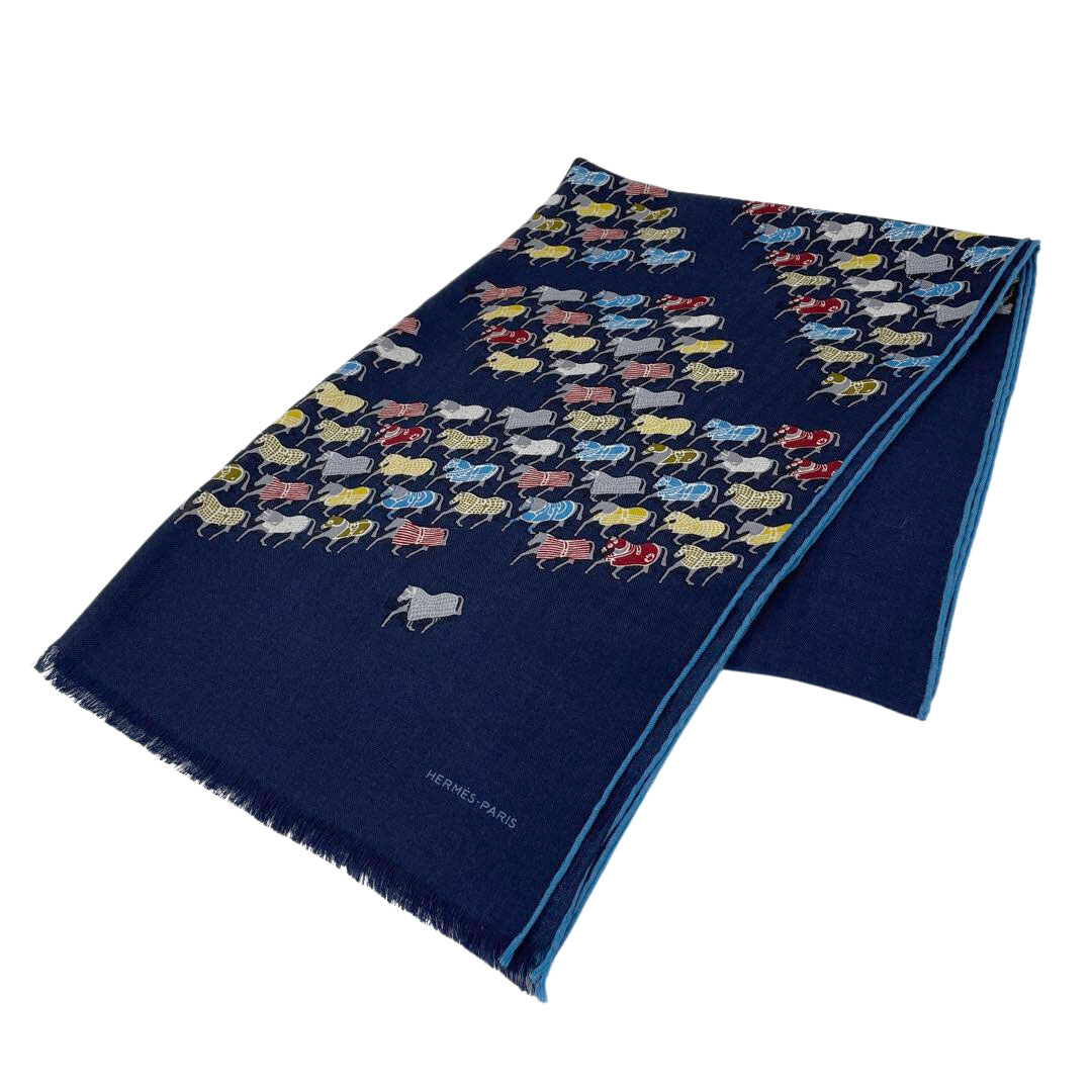 HERMES エルメス ストール マフラー レクタングル 『THE PARADE(パラード)』 63×180cm カシミヤ/シルク...