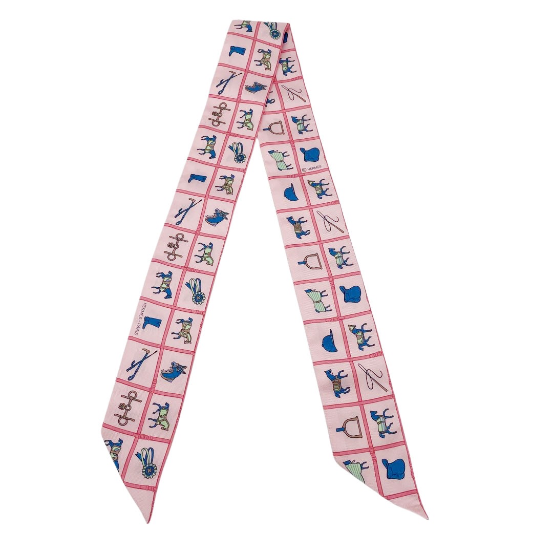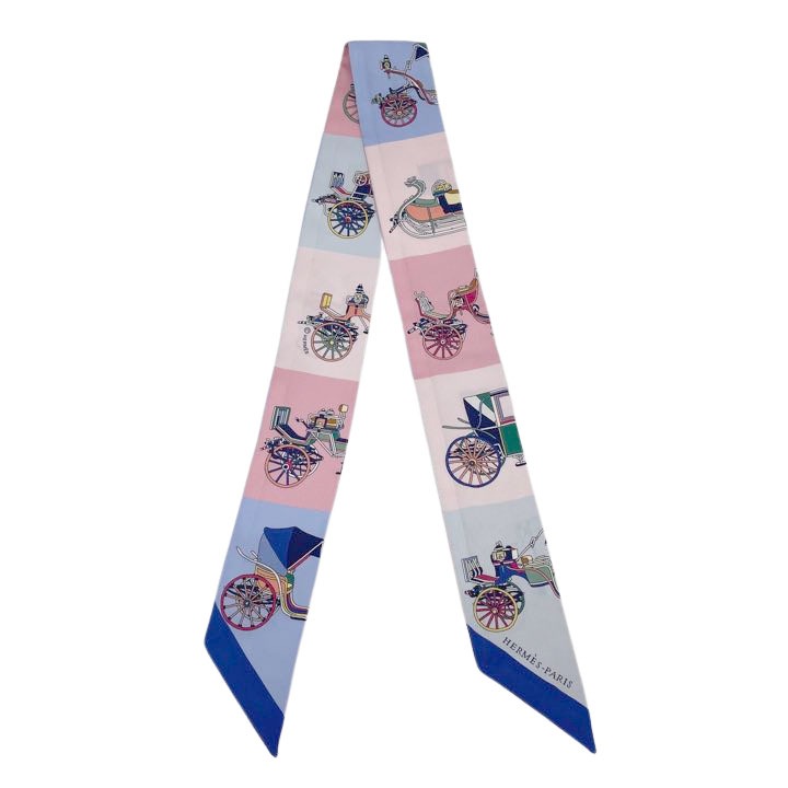 HERMES エルメス スカーフ ツイリー 『Voitures Exquises(精巧な馬車)』 シルク パステル系ブルー ピンク...