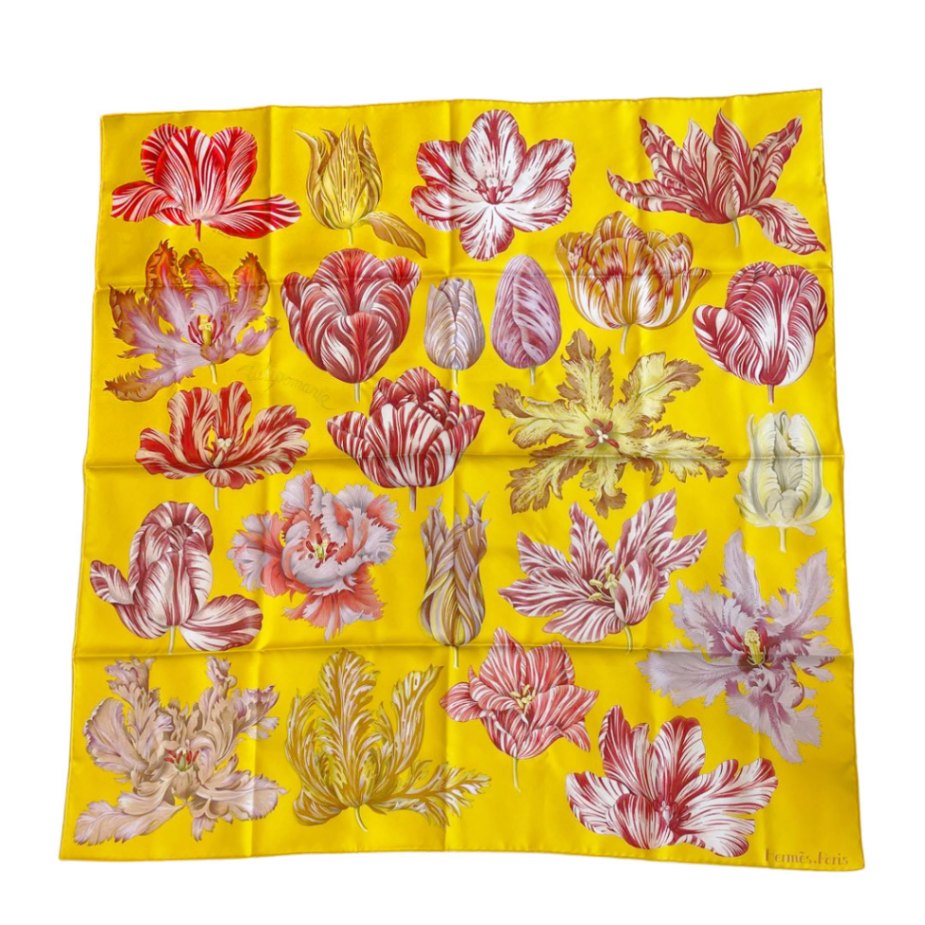 HERMES エルメス スカーフ カレ90 『Tulipomanie(チューリップマニア)』 シルク ジョーヌ・ヴィフ コライユ ...