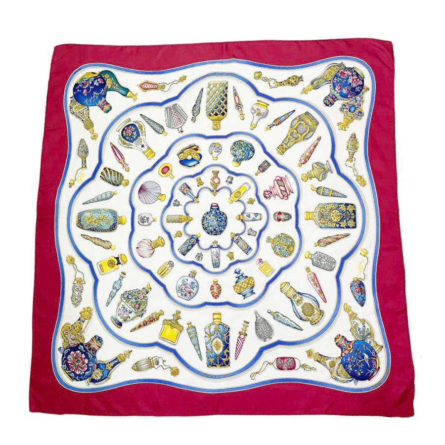 HERMES エルメス スカーフ カレ90 『Qu importe le flacon(香水柄)』 シルク ボルドー ホワイト