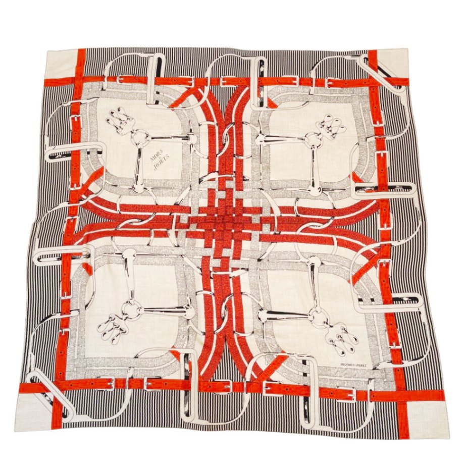 HERMES エルメス ショール カレジェアン140 カシシル 『Harnais de Cour Bandana(宮廷の馬具)』 ...