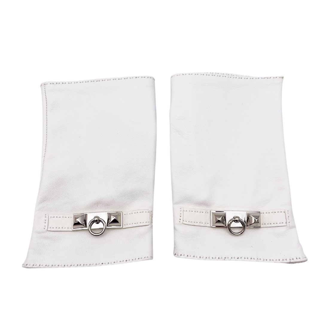 HERMES エルメス フィンガーレスグローブ 手袋 ラムレザー メドール 7 1/2 ホワイト シルバー金具
