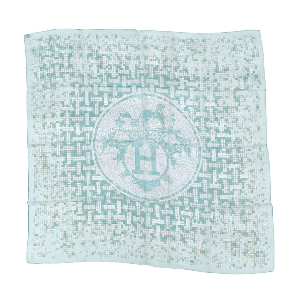 HERMES エルメス シフォンスカーフ カレ90 『MOSAIQUE AU 24』 モザイク シルク グリーン系 ◎ソルド品
