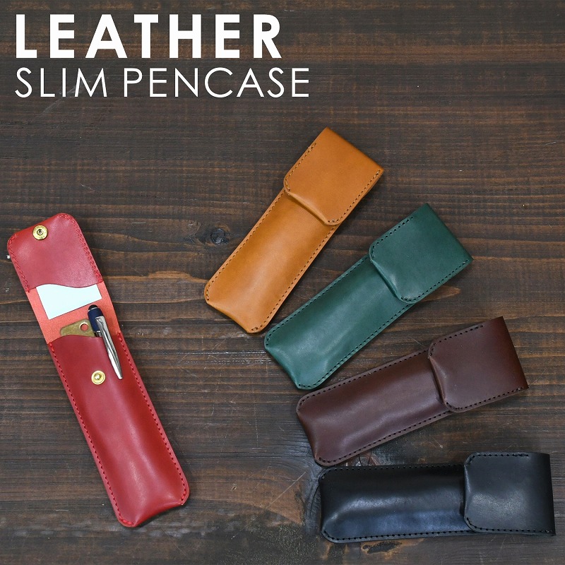 名入れ 刻印付き ヌメ革 縦型 スリムペンケース 筆箱 ペンホルダー ステーショナリー ビジネス ギフト