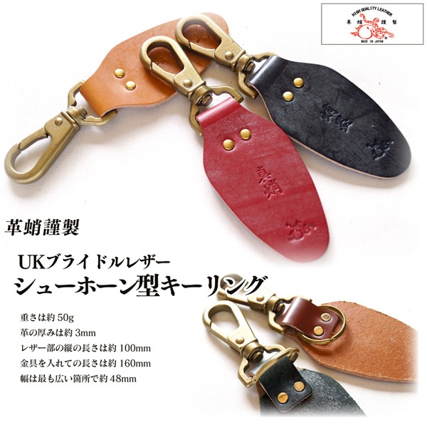 革蛸謹製 UKブライドルレザー シューホーン型キーリング 慈蛸