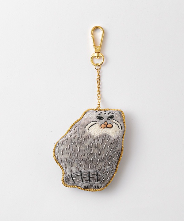 ザリ刺繍 マヌルネコ バッグチャーム(キーホルダー) M21-2852
