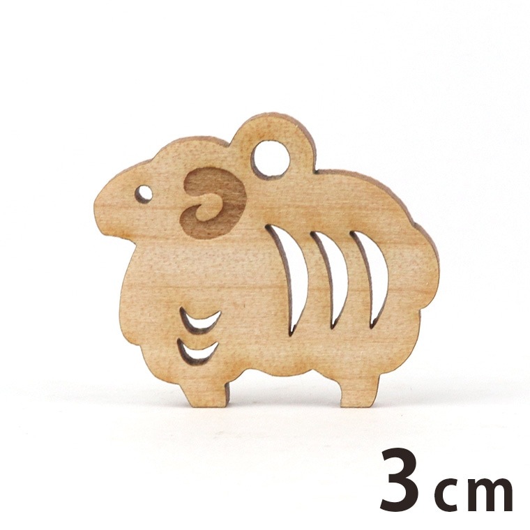 木製チャーム 干支飾り ひつじ 3cm 厚さ3mm アンシャンテラボ / 羊 未 ヒツジ 干支 十二支 お正月 縁起物 和風 和柄...