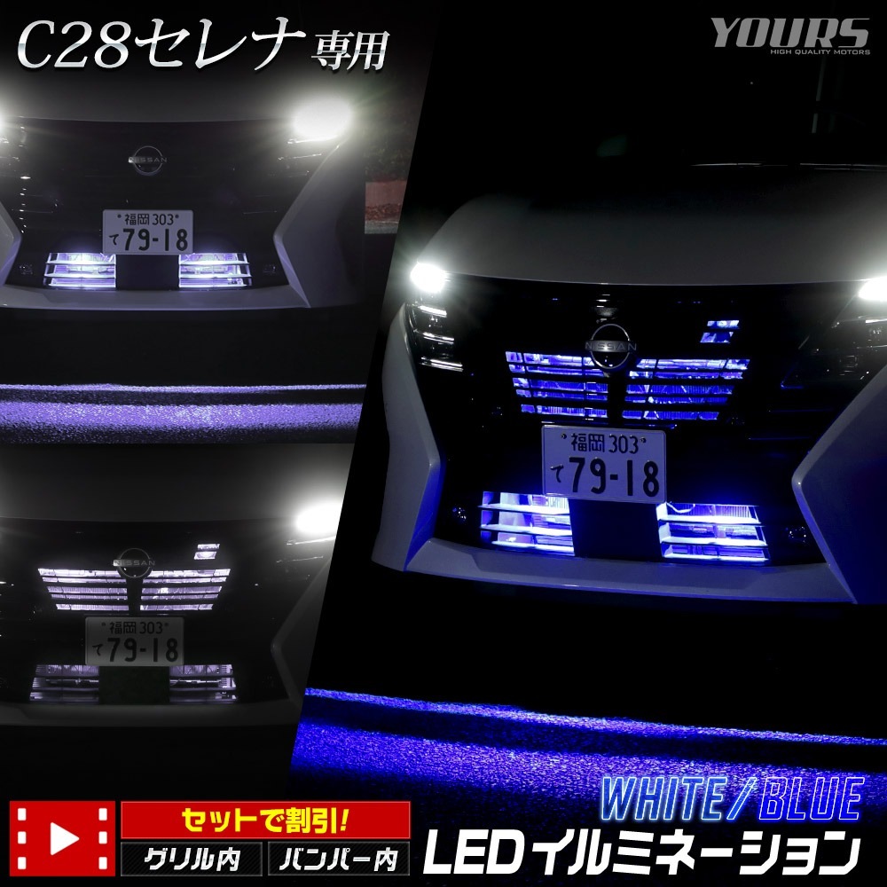 C28 セレナ 専用 LED バンパー内 グリル内 イルミネーション 【ホワイト/ブルー】 カスタム パーツ アクセサリー ドレ...