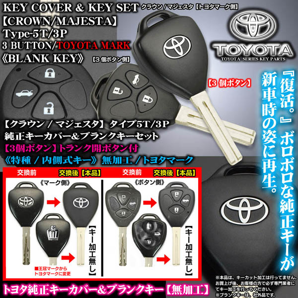 タイプ3T/BK【20/220系クラウン/ブラックメッキ】TPU製フルカバーキーケース&トヨタマーク付牛革ストラップ キーホルダー...