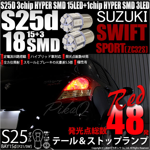 【即納】【メール便可】スズキ スイフトスポーツ[ZC32S]対応 テール&ストップランプ用LED S25d[BAY15d]3chi...