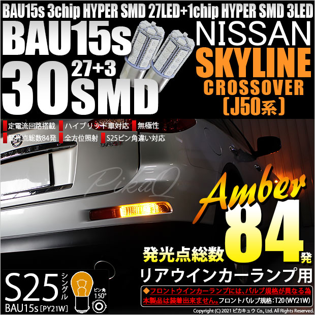 【即納】【メール便可】ニッサン スカイラインクロスオーバー[J50系]対応 リアウインカー用LED S25s[BAU15s]ピン角...