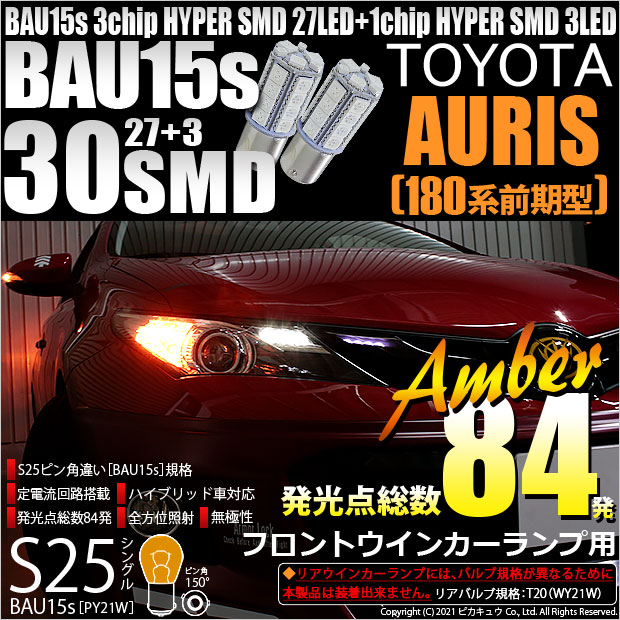 【即納】【メール便可】トヨタ オーリス[180系 前期モデル]対応 フロントウインカー用LED S25s[BAU15s]ピン角違い...