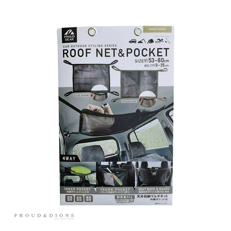 PROUD GEAR プラウドギア 天井収納マルチネット 車内収納 ルーフネット サンドカーキ 内側ポケット付 隙間活用 便利 ア...