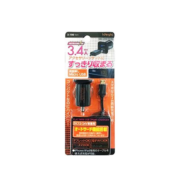アークス USBカーチャージャー 2ポート USBケーブル付 3.4A DC12/24V オートサーチ機能搭載 タブレット・スマホ...