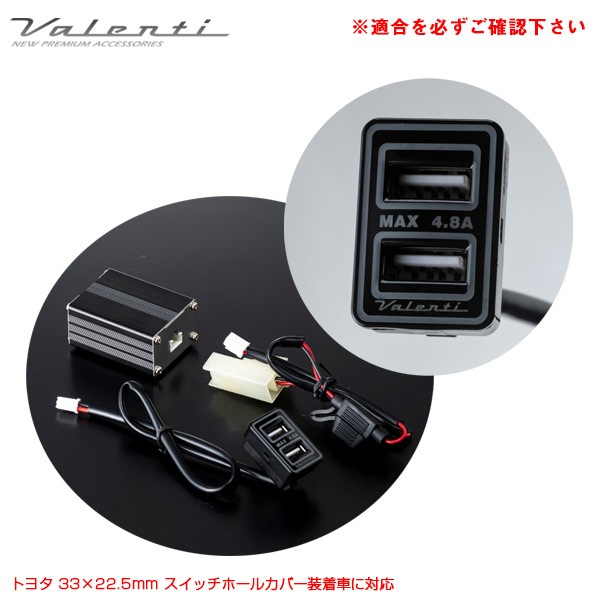 ヴァレンティ トヨタ車用 デュアルUSBポート 増設 車内 スイッチホールカバー装着車 最大4.8A 大容量 DC12V 33×2...