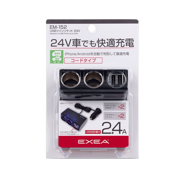星光産業 USBツインソケット DC12/24V車 2連ソケット+2.4Ax2 USBポート 接続機種を自動判別で最適充電 リバ...
