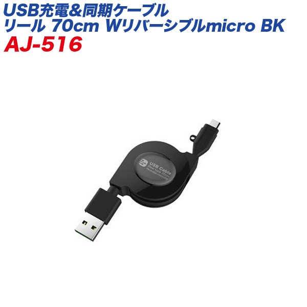 USBケーブル 充電ケーブル 同期ケーブル リール式 microUSB Wリバーシブル 70cm 2.4A対応 カシムラ/kash...