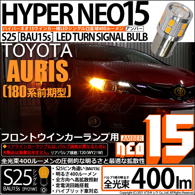 【即納】【メール便可】トヨタ オーリス[180系 前期モデル]対応 フロントウインカーランプ用LED S25s[BAU15s]ピン...
