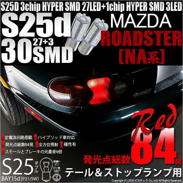 【即納】【メール便可】マツダ ロードスター [NA系]対応 テール&ストップランプ用LED S25d[BAY15d]3chip H...