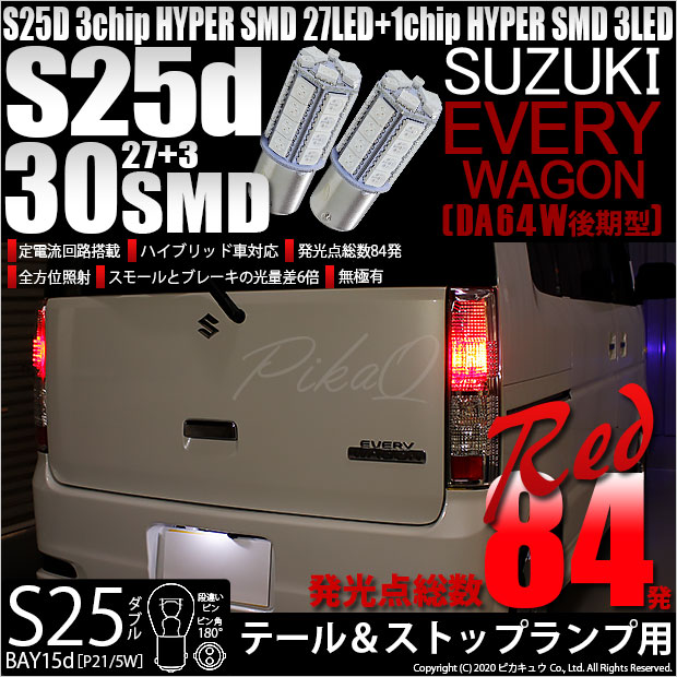 【即納】【メール便可】スズキ エブリィワゴン[DA64W]対応 テール&ストップランプ用LED S25d[BAY15d]3chip...