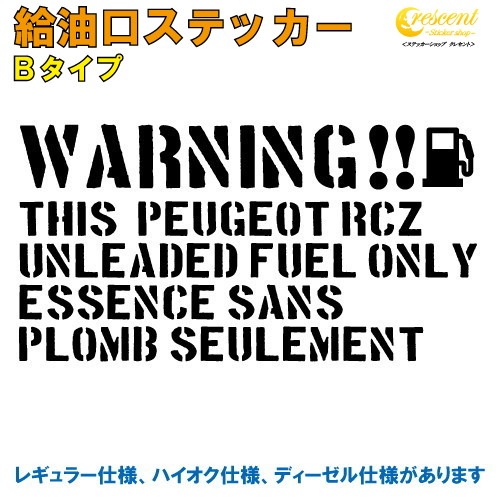 プジョー RCZ : PEUGEOT RCZ 給油口ステッカー Bタイプ 全26色 【車 フューエルステッカー シール デカール ...