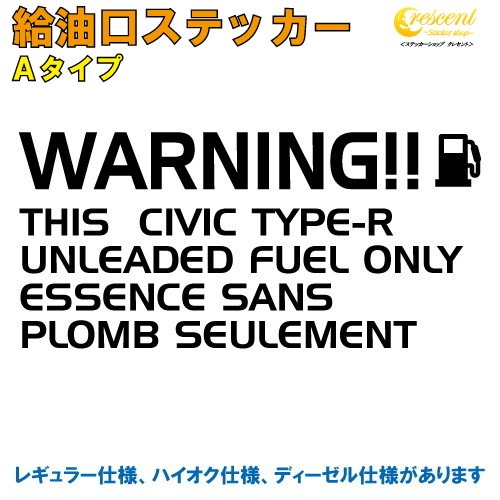 シビック TYPE-R : CIVIC TYPE-R 給油口ステッカー Aタイプ 全26色 【EK9 FD2 FK2 FK8】【車...
