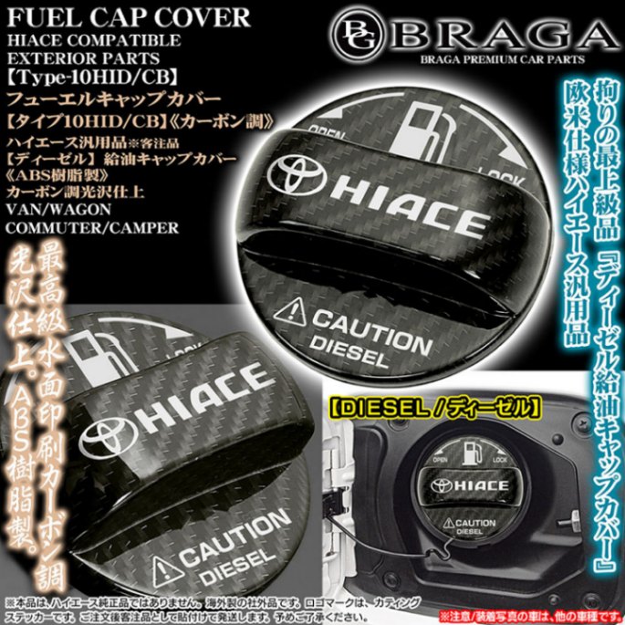 [タイプ10HID/CB]ハイエース【ディーゼル】給油フューエル キャップ カバー/HIACEロゴ&Tマークステッカー/客注[AB...