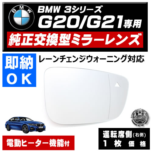 ドアミラー レンズ BMW 3シリーズ G20 G21 レーンチェンジウォーニング 対応 【社外品 運転席側 右側 純正交換型 B...