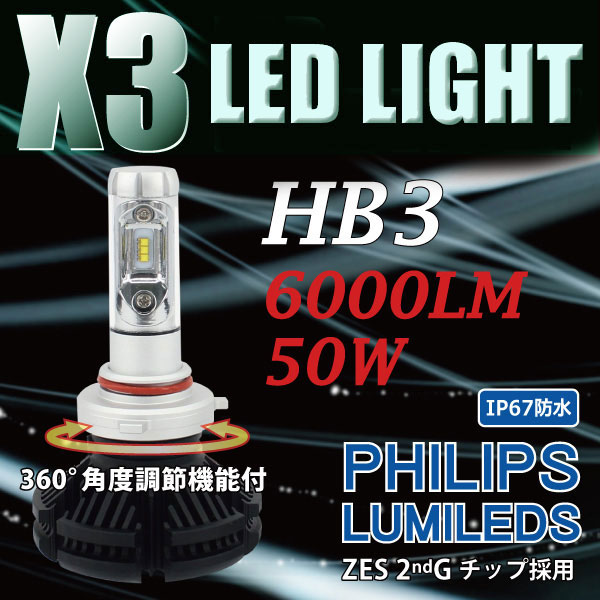X3 HB3 PHILIPS ファンレス 一体型 車検対応 LED 12000LM LEDライト KIT ノイズキャンセラー 【X...