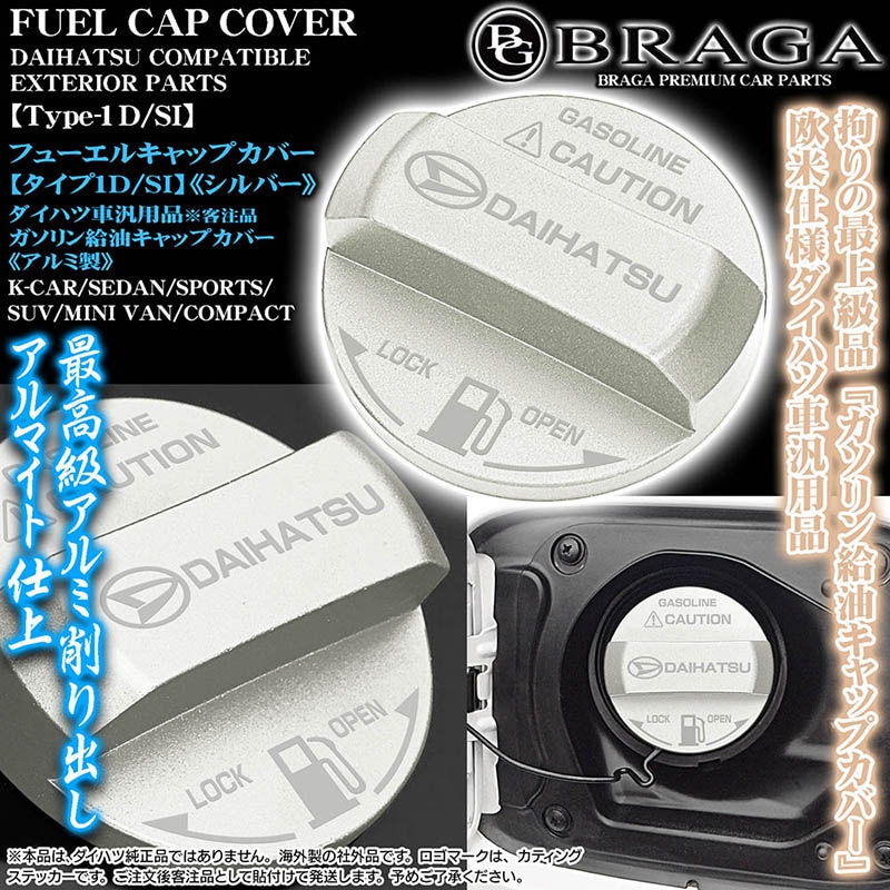 [タイプ1D/SI]給油 フューエル キャップ カバー[アルミ製アルマイト/シルバー]ダイハツ ロゴマーク カッティングステッカー...