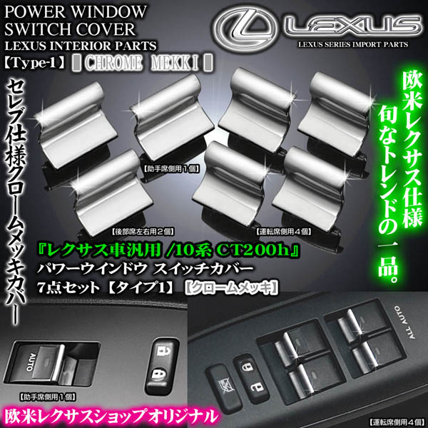 【タイプ1】ブラガ/レクサス車用互換品10系CT200h[クロームメッキ・7点セット]パワーウインドウ ボタン/スイッチカバー欧米...