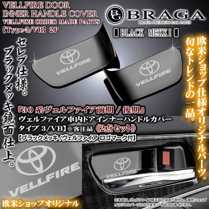 30系ヴェルファイア前期/後期【タイプ3/VB】VELLFIREロゴ&トヨタマーク付/客注品/車内ドアインナーハンドルカバー《ブラ...