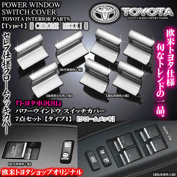 【タイプ1】トヨタ車汎用[クロームメッキ・7点セット]パワーウインドウ スイッチカバー/欧米トヨタ仕様/ブラガ