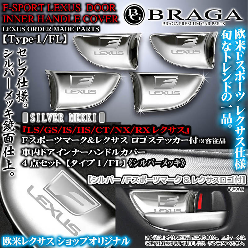 【タイプ1/FL】Fスポーツマーク& LEXUSロゴ付/客注品/車内ドア インナーハンドルカバー《シルバーメッキ》4点/レクサス車...