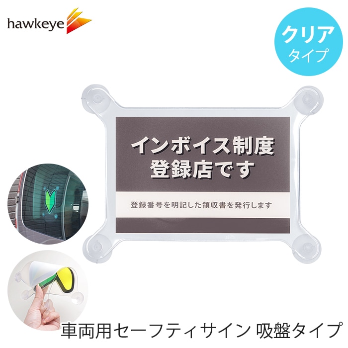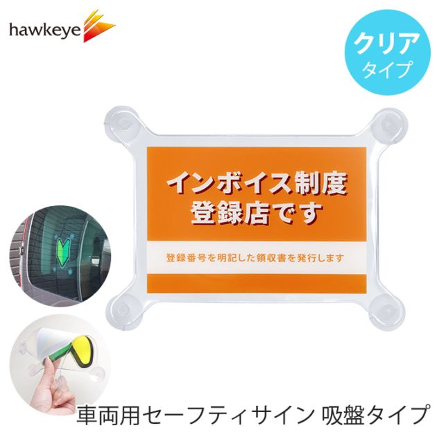 【吸盤 クリア インボイス オレンジ 】セーフティサイン 吸盤タイプ インボイス制度 登録店 オレンジ 1枚